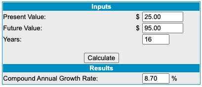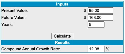 虽然我们确实同意存在某种多重压缩来证明股票表现不佳是合理的,但它也可以归咎于执行。当您计算其年增长率时,收入表现并不是那么好。这是 8.7% 的收入复合年增长率,还不错,但对于以 30 倍销售额交易的股票来说,这并没有什么特别之处: