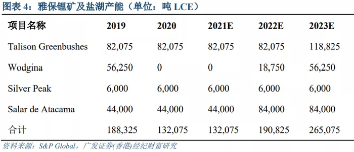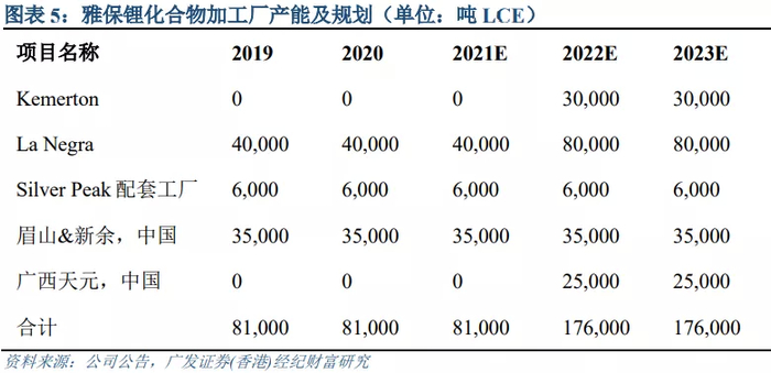 雅宝加工产能落后于锂资源产能的状况将在 2022 年后得到改善