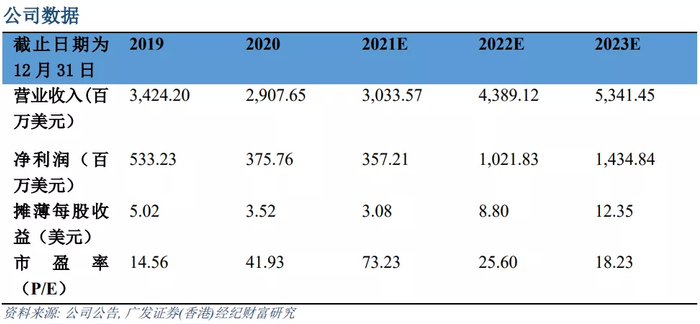 我们预计 2021-2023 年雅宝 EPS 将分别为 3.08 美元、8.80 美元和 12.35 美元。估值方面,综合考虑公司的成长性、业务周期性和财务状况,我们给予 2022 年雅宝合理PE倍数34.36倍,对应2022合理股价为302.33美元,潜在升幅空间为43%。