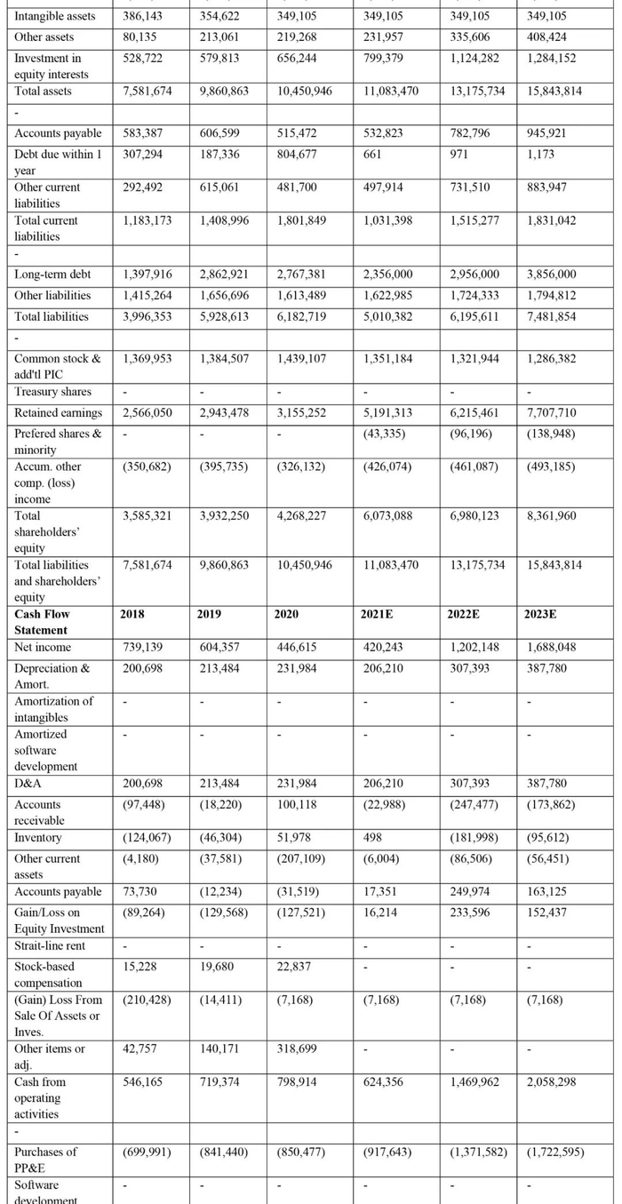 我们运用分部估值汇总法进行公司估值。我们认为 2023 年雅宝合理市盈率为30.59x,对应合理每股价值$377.91,基于: