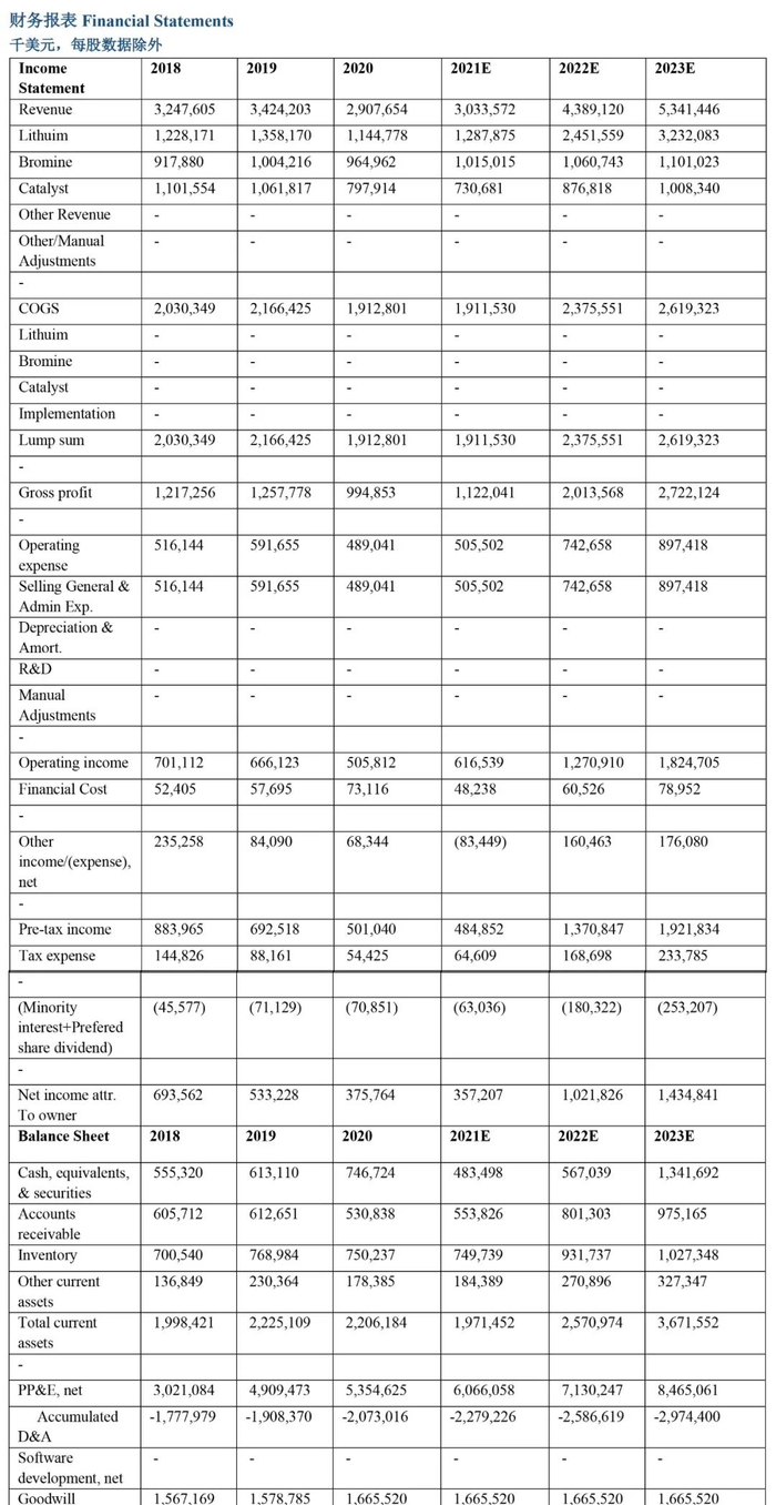2.溴业务合理市盈率 20X,由于工业对溴需求的刚性及雅宝在此业务形成的稳定盈利水平;