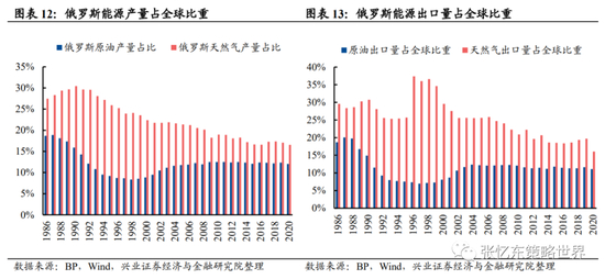 俄罗斯是全球重要的油气生产国和出口国。2020年俄罗斯原油产量为1066.7万桶/天,占全球原油产量的12.1%,出口占比达到11.1%;天然气产量占全球产量的16.6%,出口占比达到16.1%。