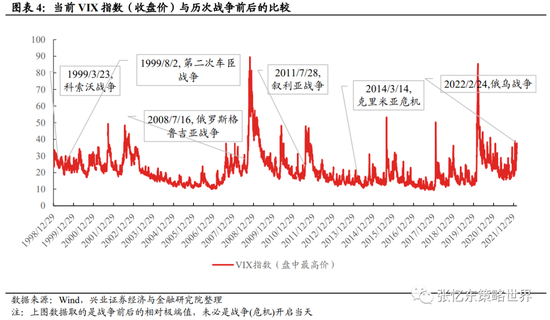 相比于1999年至今,过去有俄罗斯身影的可比战争,当前反映市场避险情绪的指标均处于极端的水平。