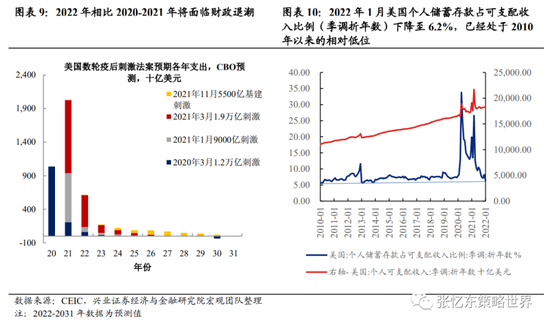 首先,美股投资时钟走向“滞涨期”之滞的风险在于高通胀高基数的影响。20220125《美股短期底和中期底预测及美股波动对中国股市影响》我们判断,在2020-2021年美国纾困疫情的天量刺激之后,2022年财政退潮,居民储蓄率转换为消费的动能将明显回落,高通胀使得实际购买力被侵蚀。再考虑到高基数效应,二季度美国经济增速或有走弱风险。