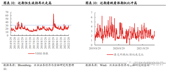 首先,战争冲突下的全球避险情绪已明显冲击了港股。1)港股衡量恐慌的指标——恒生波动率指数、港交所看跌看涨比冲高。2)估值再次回到具有吸引力的位置——截至2月25日,恒生指数再次破净,市净率水平跌至0.94倍;AH溢价在经历年初大幅回落后,近期继续走高。