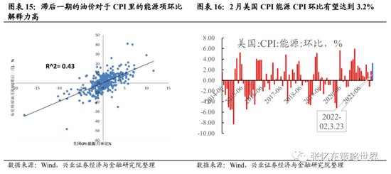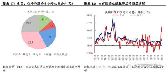 2月至今年上半年,美国通胀料难明显回落。联储开会前公布的2月CPI料将继续维持高位。一是能源项将继续走高,滞后一期的油价对于CPI里的能源项环比解释力高,在1月油价冲高背景之下,我们的模型测算2月CPI能源项环比有望达到3.2%,这一数值处于过去近一年的高位——仅次于2021年3月,当前至少静态来看,3月该数值也将继续居高;二是当前服务业通胀滞后于商品通胀,后续疫情缓解,CPI占比权重更大的服务业修复所推动的核心项继续居高。