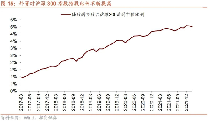 5、外资对沪深300成分股持股比例持续提高
