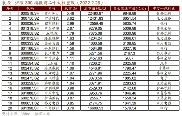 沪深300指数是典型的大盘风格。沪深300指数由沪深两市A股中规模大、流动性好的最具代表性的300只股票组成,截止2022年2月末,沪深300指数成分股中,近一半公司(149家)市值超过1000亿元。
