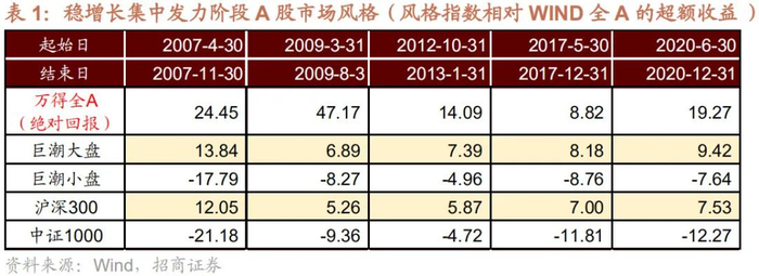 从五轮稳增长大年的经验来看,在稳增长发力阶段,稳增长政策的力度往往超出投资者预期。这个阶段的风格较为明确,投资者首选的是周期性较强弹性较大的煤炭有色,以及明显受益于社融增速大幅改善的金融板块,主要集中在大盘风格。所以在稳增长发力阶段大盘占优的概率较大,沪深300指数相对中小风格指数有更好的表现,这个阶段往往也会伴随着指数级别的上涨。因此未来随着稳增长政策集中发力,大盘蓝筹低估值风格的沪深300指数有望受益占优。