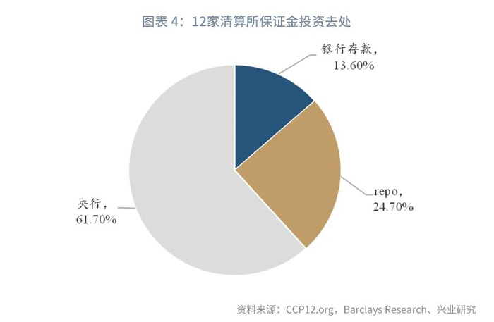 一般情况下,在市场情绪比较悲观时,清算所更倾向于将保证金存入更为安全的央行中。自2020年新冠疫情爆发以来,央行持有的保证金份额已经上升至62%。美国清算所的保证金大部分存于芝加哥联储和纽约联储,这主要是因为IORB利率更高,比较优势下清算所更愿意投入央行。