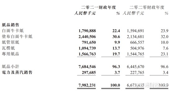 从收入结构来看,白面牛卡纸纸实现营业收入17.91亿元,同比增长12.3%;涂布白面牛卡纸24.41亿元,同比增长14.3%;纸管原纸7.92亿元,同比增长18.07%;专用纸15.67亿元,同比增长1.5%;瓦楞纸10.95亿元,同比增长116.8%;纸品合计营业收入76.85亿元。除了主业以外,公司产生电力及蒸汽收入2.97亿元。