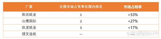 由于125g 低定量涂布白面牛卡纸产品低克重、高强度的特点能大大降低客户的原纸成本,因此迅速抢占了包装纸领域的市场份额,最新数据显示,阳光纸业的涂布白面牛卡纸的市场占有率超过 53%,同时也是国家白面牛卡纸系列产品4套 国家行业标准的制定者,是当之无愧的细分领域龙头纸企。