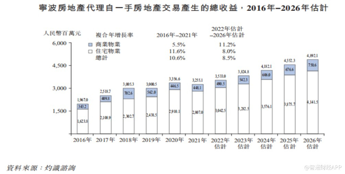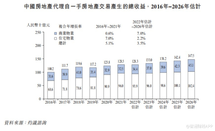 灼识咨询预计,中国房地产代理自一手房地产交易产生的总收益将在2026年达到1475亿元,2022年至2026年的复合年增长率为3.5%。