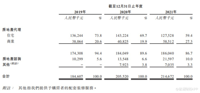 于截至2019年、2020年及2021年12月31日止年度,迪赛基业来自房地产代理服务的收益占总收益的94.4%、89.6%及86.7%,来自房地产咨询服务的收益分别占相应年度总收益的5.6%、6.6%及10%。