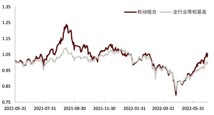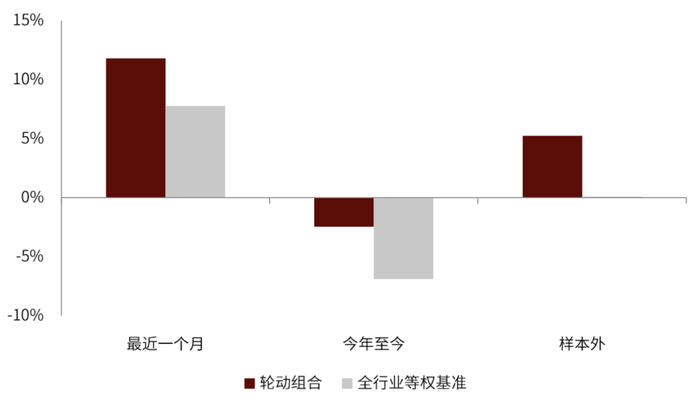 今年以来轮动组合收益率-2.5%,同期行业等权基准收益率-6.9%,超额收益率4.8%。