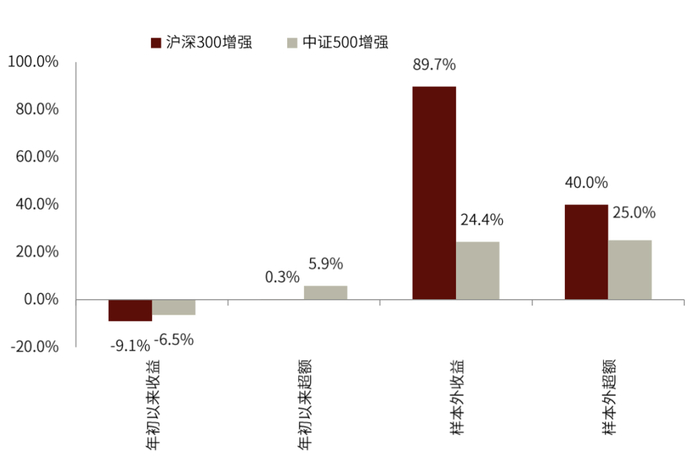 图表10:中金量化指数增强组合样本外收益表现更新