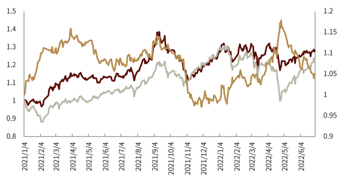 当前(2022-07-01)成长/价值轮动综合指标值为0.13,成长风格继续占优,指标值较上月的0.22有略微下降。具体来看,市场情绪略微偏向价值风格;宏观方面,经济环境大类指标为0.31,金融环境大类指标0.15,均偏向成长风格。综合来看,我们认为成长风格短期或延续优势。