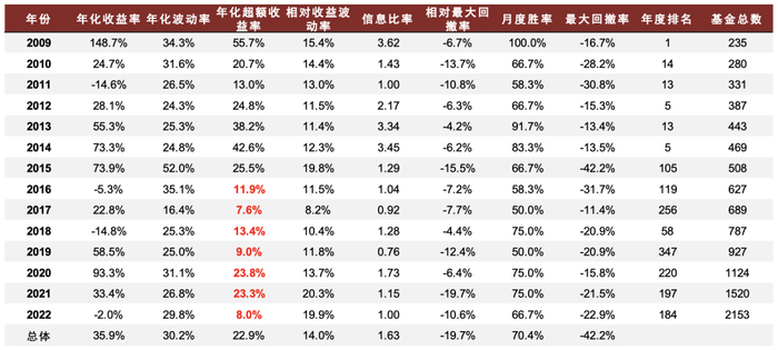 图表16:成长趋势共振选股策略分年度收益统计