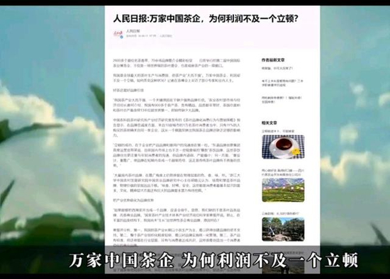 10年后,人民日报再次发文《万家中国茶企,为何利润不及一个立顿?》,给出的数据是: