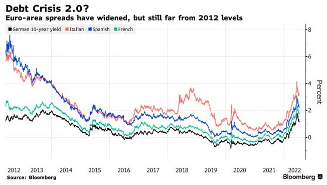 整个意大利政坛陷入混乱,也正是彭博经济预测的最后一个场景。彭博经济学家表示:“如果政治形势变得敌对,意大利新政府无法与欧盟委员会就前进道路达成一致,就不可能现实地指望欧洲央行出手干预。鉴于它仍将不得不应对通胀,结果将是分裂——并可能爆发危机。”