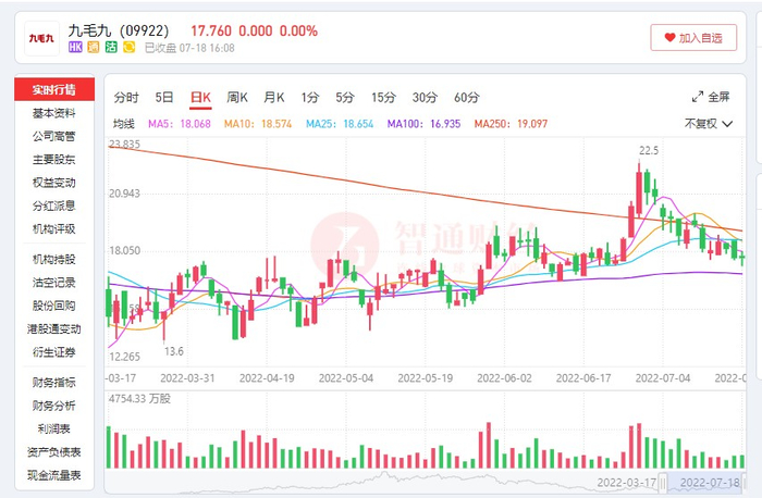 经营遇冷,反映在资本市场上,是股价的接连下跌,近七个交易日累计跌幅超20%。值得关注的是,券商对九毛九的信心亦有所动摇。瑞信发布研报将其评级由跑赢大市”降至“中性”,目标价由21港元下调5%至20港元。
