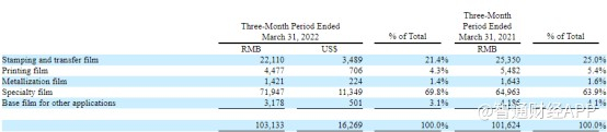 不难看到,特种薄膜是富维薄膜主要收入来源,2022年Q1季度,公司的特种膜实现收入7190万元,其收入在总收入中的占比也从2021年同期的63.9%上升至2022年同期的69.8%。