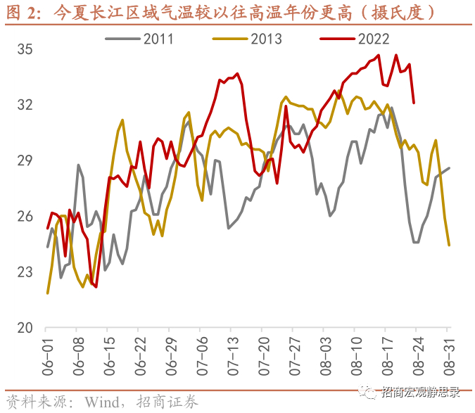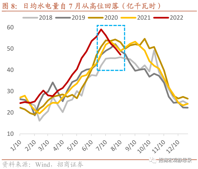 参考2006、2011和2013年的规律,结合今年的旱情形势,如果长江地区不能在雨季尾声的8月底-9月有效“补水”,今年秋冬的日均水电发电量可能会低于去年同期3-5亿千瓦时,需要由火电补充。截至8月上旬,日均火电发电量已经较6月下旬上升了35亿千瓦时,而重点电厂煤炭库存可用天数则从20+天降至15天,从近年同期的偏高水平下降至偏低水平。考虑到入秋之后气温回落将带动居民用电减少,这一缺口的影响暂时偏弱;入冬之后,取暖需求将带动居民用电再度上升,如果水电持续偏弱,将会重新放大火电的供应压力。从地理区位来看,水电依赖度更高、火电补充弹性更低的地区,再次面临缺电的潜在风险也更高。