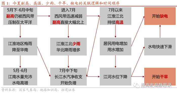 缺电,供给端是“高温+少雨”导致江河水位下降、水力发电能力下降,需求端是“高温”推升居民用电量。在保障居民用电优先的原则下,缺电造成工业用电受限,影响工业企业特别是高能耗行业的正常生产。