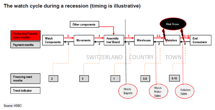 而腕表处境可能更为艰难,该行业需要较长的交货时间,且主要依赖第三方零售商分销,因此受到零售商补库存或去库存政策的影响,更像是一个‘晚周期’行业。”