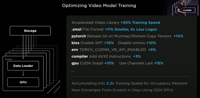 Dojo从设计之初就考虑了硬件层面要为深度的神经网络训练做考虑,所以整个Dojo系统从芯片到机组再到机房的传输带宽都十分可观,并且特斯拉也将Occupancy网络应用于Dojo系统之中,实现了AI硬件与AI软件的更佳匹配,最后在降低延迟和性能损失上取得的效果十分惊人。