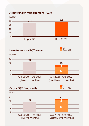 另一边,即将成立30年的EQT更是来头不小。EQT在三季度财报中披露,即便受到市场不确定性及融资市场制约的影响,集团在本季度仍然投出了30亿欧元,并实现20亿欧元的退出。