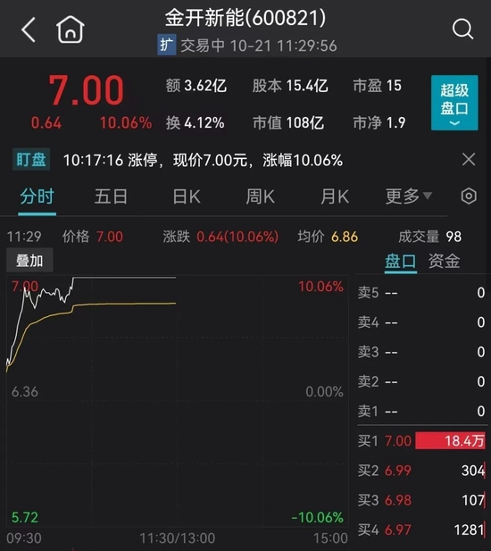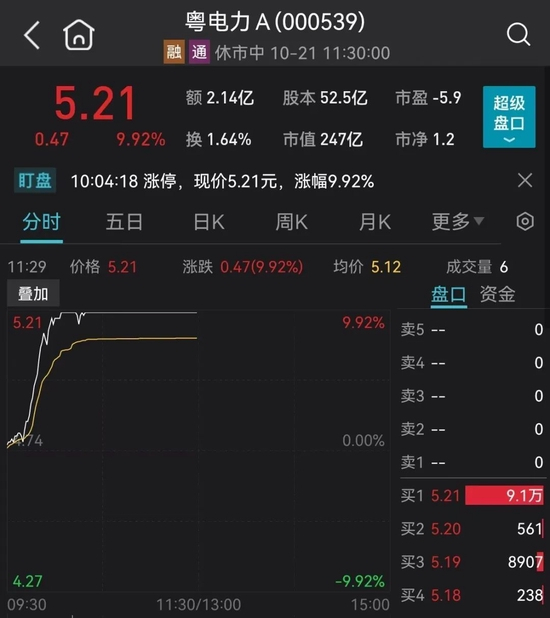 此外,以光伏、风力发电为主的金开新能和风力、水力发电为主的粤电力也在10点之后封板。