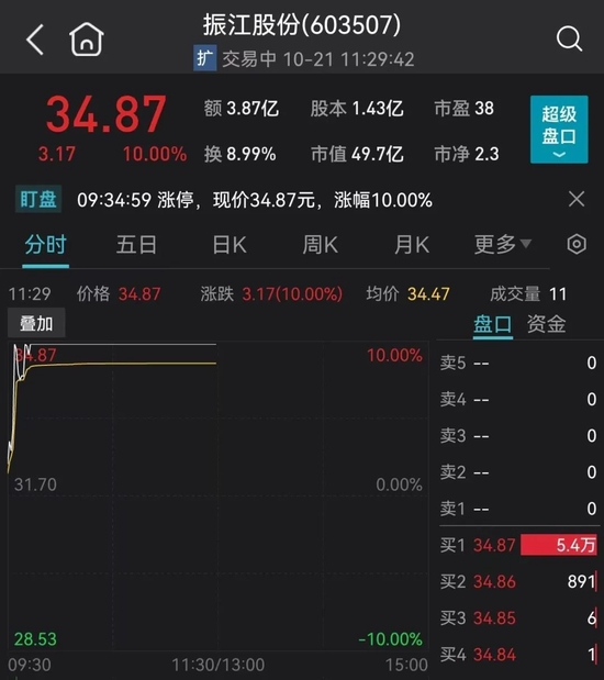 其中,振江股份快盘后直线触板。截至午间收盘,超5万手大单一直封在涨停板上。
