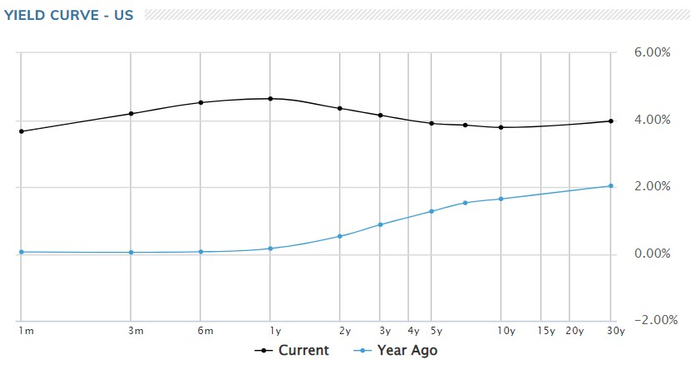 智通财经了解到,近一年来美债收益率持续飙升,2年期美债收益率一度升至4.8%这一2007年以来的新高,影响全球资产定价的10年期美债收益率一度升至4.3%这一15年来新高。尽管近期美债收益率持续下滑,但市场对于加息再度升温以及收益率回升的担忧仍然存在,并且自今年以来美债收益率曲线持续倒挂,意味着市场对于经济衰退的担忧还未降温。