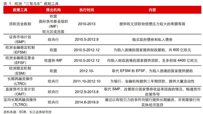 欧盟、欧央行、IMF组成“三驾马车”,多轮出手帮助化解债务危机。2010年开始,欧盟、欧央行及IMF推出一系列资产购买、融资支持计划等工具,为希腊、葡萄牙、爱尔兰等国提供贷款缓冲,通过补充流动性来减缓债务压力。作为条件,希腊也被要求必须严格控制预算、大幅削减福利,以减少政府开支。这些救助措施尽管在一定程度上改善了流动性压力,但在严厉的紧缩政策影响下,希腊经济增长乏力、社会动荡不安,一直难以恢复偿还能力,2012年、2015年三驾马车又被迫再度出手,进一步提供贷款资金帮助化解债务危机。