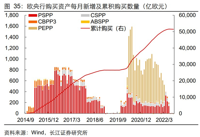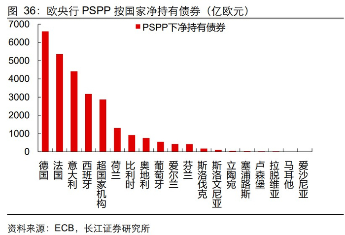 资产购买计划对刺激经济复苏起到重要作用,但是难以解决欧元区的结构性问题。疫情的冲击下,边缘国与核心国之间的经济差距再度拉开。为了刺激疫后经济快速复苏并支持各国财政抗疫支出,欧央行于2020年3月重启资产购买计划(APP)并推出抗疫紧急购债计划(PEPP),总规模超过1.7亿欧元。但该计划为欧元区各国提供的财政支持并非均等,从公共部门资产购买项目(PSPP)的购买情况来看,欧央行的购买仍然大量集中于德法等核心国家,意味着欧元区碎片化问题依然存在。