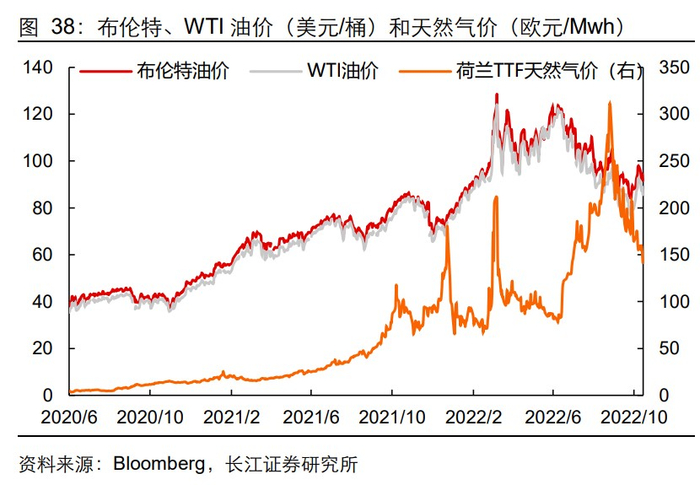 北溪管道停运导致欧洲进口俄气大幅下滑,欧洲天然气艰难补库。由于欧盟对俄罗斯天然气的高度依赖,天然气在欧盟对俄的前七轮制裁中一直处于安全区域。但超出欧盟预期的是,运输俄气的北溪管道却多次停工检修,甚至遭遇人为破坏,导致天然气供给持续受限,推动欧洲天然气基准价格荷兰TTF一度涨至311欧元/兆瓦时的高点。而对于欧元区来说,尽管天然气价格飙升,但为了保证今年取暖季(10月至3月)有足够的天然气储备,不得不高价购买天然气进行补库,最终使得欧元区通胀压力进一步增大。
