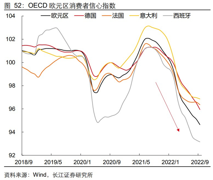 总的来说,全球经济下行周期或已到来,随着欧洲经济一步步走向衰退的边缘,欧债危机重演的可能性也在不断增加。对于我国来说,欧洲景气下行或对我国出口造成考验,但欧洲对于能源和取暖的需求仍利好我国相关商品的出口,同时我国较低的通胀环境仍在持续吸引欧洲资本向我国转移,有望带动我国投资支出增长。