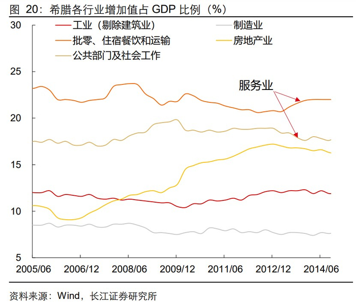 加入欧元区并未改变希腊福利支出过大、产业空心化的问题,财政持续入不敷出。希腊加入欧元区之后,本该借由欧元区便利的贸易条件持续发展经济,缩减政府债务水平并弥补财政的缺口,然而希腊却选择依靠旅游业发展经济,而制造业的比重却不断下降,产业逐渐呈现空心化的趋势。与此同时,希腊还维持着高昂的福利支出,使得希腊财政状况持续恶化。