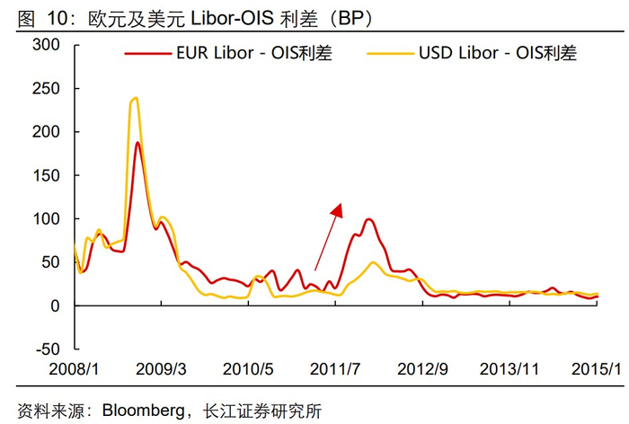 资产质量大幅下滑,流动性危机蔓延主权债务危机传导至银行体系,引发流动性危机。在希腊、爱尔兰、葡萄牙、西班牙等国国债利率飙升的同时,持有大量国债资产的欧洲商业银行成为了其中最大的受害者。不仅导致各大银行的债券资产严重贬值,还导致银行体系内出现信用危机,融资成本被动升高,流动性不断收缩,不得不进一步抛售所持有的资产。在严重的流动性压力下,2011年9月14日,法国农业信贷银行和法国兴业银行的信用评级遭穆迪下调,因而欧洲银行体系成为了危机的放大器。