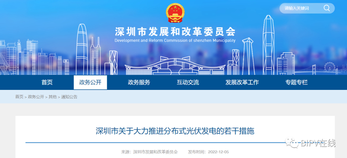 12月5日,深圳市发展和改革委员会发布《深圳市关于大力推进分布式光伏发电的若干措施》,文件明确: