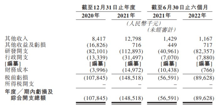 财务方面,虽然友芝友生物有其他收入来源,但于往绩记录期间,公司尚未从商业化候选药品中获得任何收入,并已产生且可能继续产生大量的研发开支及与持续运营相关的其他开支。截至2020年及2021年12月31日止年度以及截至2022年6月30日止六个月,公司分别录得亏损及综合开支总额人民币1.08亿元、人民币1.49亿元及人民币0.90亿元。同期,其他收入为人民币841.7万元、1279.8万元以及116.7万元。