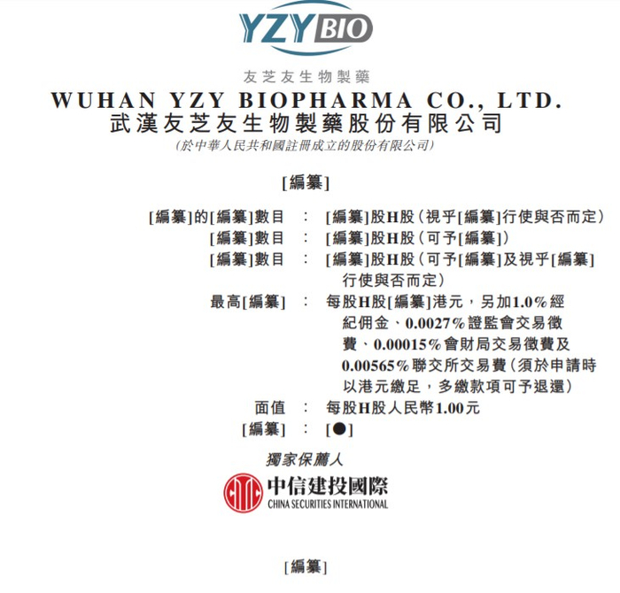 据港交所12月9日披露,Wuhan YZY Biopharma Co.,LTD.(武汉友芝友生物制药股份有限公司) 向港交所主板提交上市申请,中信建投国际为其独家保荐人。