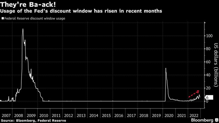 以Jay Barry为首的摩根大通分析师表示:“令人惊讶的是,尽管系统中存在可用的流动性,但贴现窗口的使用量仍在增加。”“在贴现窗口借款通常被视为银行在寻求资金方面的最后手段,因此这种做法有一种隐形的耻辱感。”