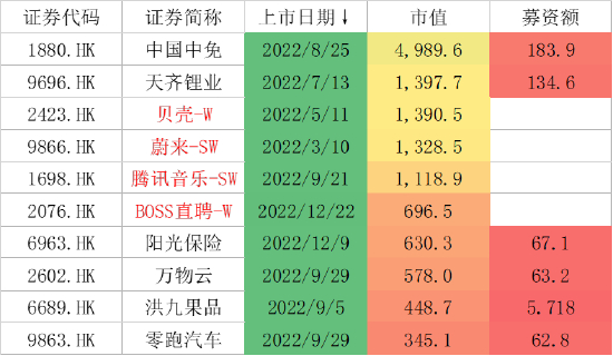 港股前十大新股诞生,其中,中国中免募资183.9亿,成为募资王,而天齐锂业和中创新航募资额也超100亿,分列二三名。