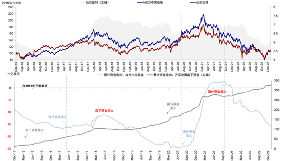资金面上,南向资金有望受益国内流动性环境继续流入,成为港股资金主力;海外资金的大举回流则有待基本面改善。2022年以来,国内货币政策立场持续宽松并逐渐加码,这为南向资金持续流入营造了先决条件。2023年,虽然宏观流动性难以宽松加码,但居民资产从储蓄边际转到资本市场依然将提供有利环境。相比之下,海外资金的大举流入,结合历史经验看,更多由中国增长和盈利前景驱动,即便美联储紧缩,如2017年。后续如果国内基本面与企业盈利能够持续修复,我们预期海外资金在当前已明显低配的条件下也有望回流(《2023年十大预测:翻开新篇》)。
