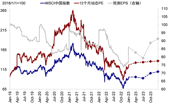 往前看,港股市场后续的节奏和空间取决于“三重压力”的依次缓解,类似于“三层台阶”:第一步是风险偏好的改善,2022年11月以来的反弹基本完成(股权风险溢价修复至平均水平);第二步是2023年一季度美国通胀继续回落和美联储加息停止推动美债利率下行、与中国疫后修复和政策加码预期带来的进一步估值修复机会,目前看可见度也相对较高;第三步,也是力度更大的一步,为二季度后企业盈利的修复前景,我们认为这将是决定港股反弹可持续性的关键因素。