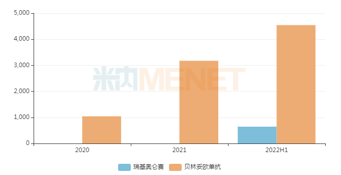 中国公立医疗机构终端瑞基奥仑赛和贝林妥欧单抗销售趋势(单位:万元)