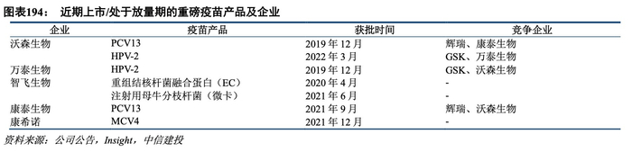 非新冠疫苗:疫情管控措施调整拉动非新冠疫苗恢复性增长。疫情管控措施调整并放松后,一方面,由于新冠疫苗接种率持续提升,新冠疫苗需求趋于饱和,挤兑效应逐步缓解;另一方面,人员流动性增加,导致对非新冠疫苗的补种需求得到释放。因此,有利于拉动非新冠疫苗实现恢复性增长。建议关注:沃森生物&康泰生物PCV13、智飞生物HPV系列+EC&微卡、康希诺MCV4、万泰生物&沃森生物HPV-2已上市销售;未来康泰生物二倍体狂苗、百克生物带状疱疹疫苗等重磅品种有望于2023年上市,为企业带来新的业绩增长点。