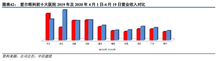 2020年国内疫情影响回顾——爱尔眼科:2020年4月中下旬境内医院恢复正常。2020Q1,疫情对公司境内主营业务影响主要在2月、3月,对境外主营业务的影响主要从3月下旬开始。1月,公司收入同比增长13.5%;2月,各地政府防控加强,各地医院暂停门诊及手术服务,收入同比下降62%;3月中旬,国内疫情逐步得到控制,各地医院陆续复工复诊,而全球大范围爆发开始,境外眼科中心开始暂停门诊及手术服务导致收入同比下降45%,公司整体收入同比下降34%。2020Q2,境内医院从4月19日基本恢复正常,公司整体Q2收入同比增长0.72%。